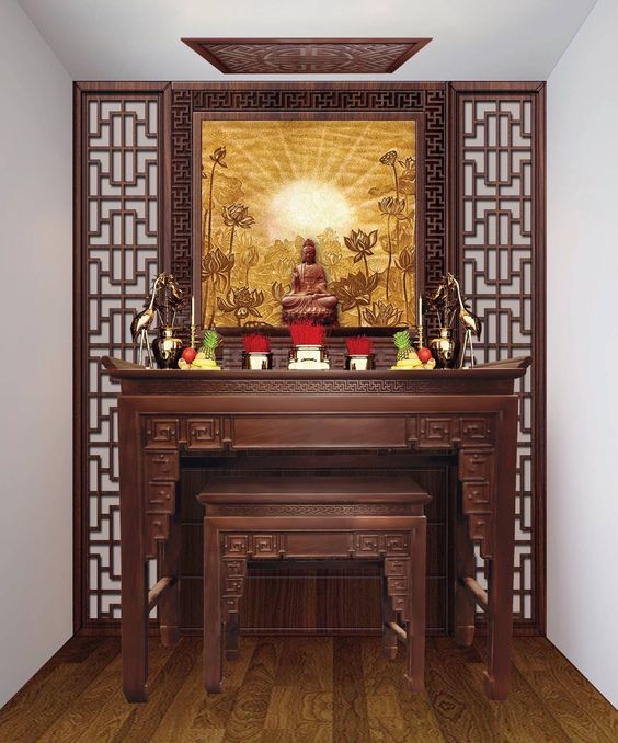 Khám phá Sự Hài Hòa Trong Nội Thất Phòng Thờ với Vách CNC và Bàn Thờ