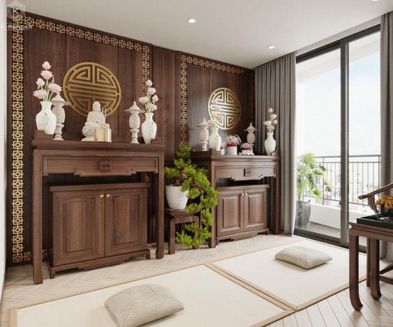 Khám phá Sự Hài Hòa Trong Nội Thất Phòng Thờ với Vách CNC và Bàn Thờ